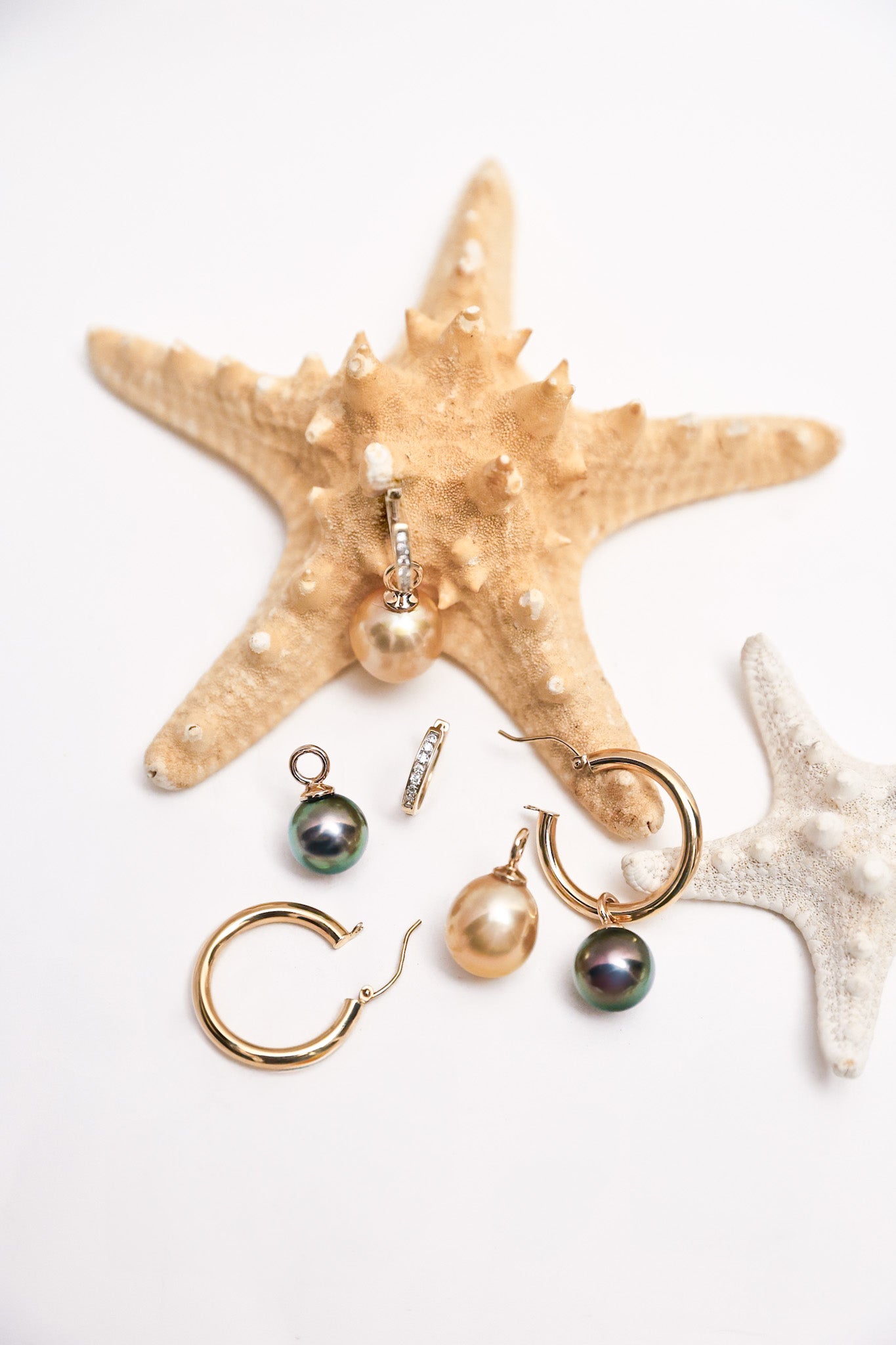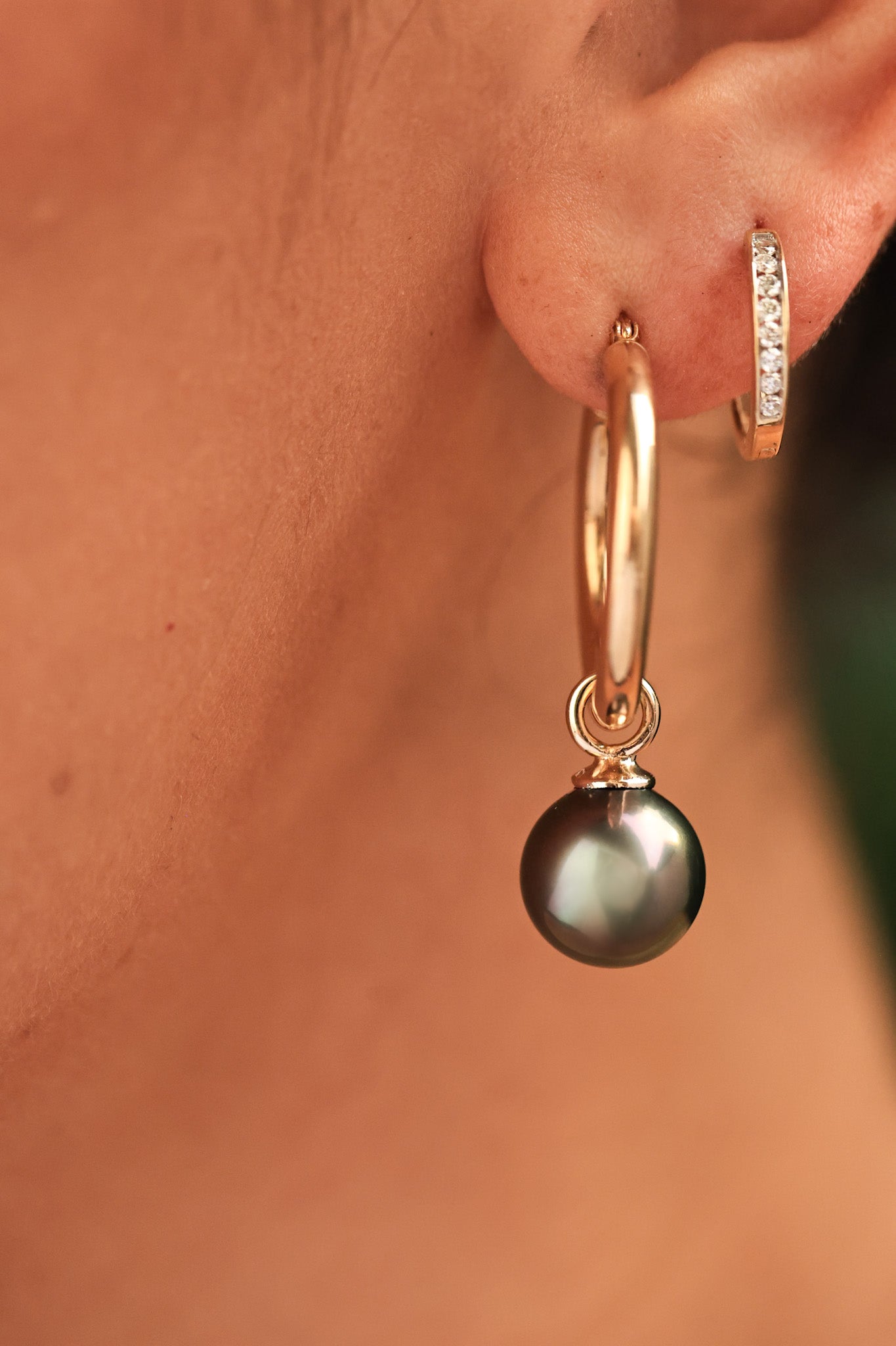 Inspired by the Hawaiian value of pono—balance and righteousness—these earrings combine the beauty of diamonds and the allure of Tahitian pearls to create a perfect balance of elegance and strength. Whether you’re dressing up for a special event or adding understated luxury to a daily outfit, the diamond hoop and customizable pearls bring out the best in every moment.