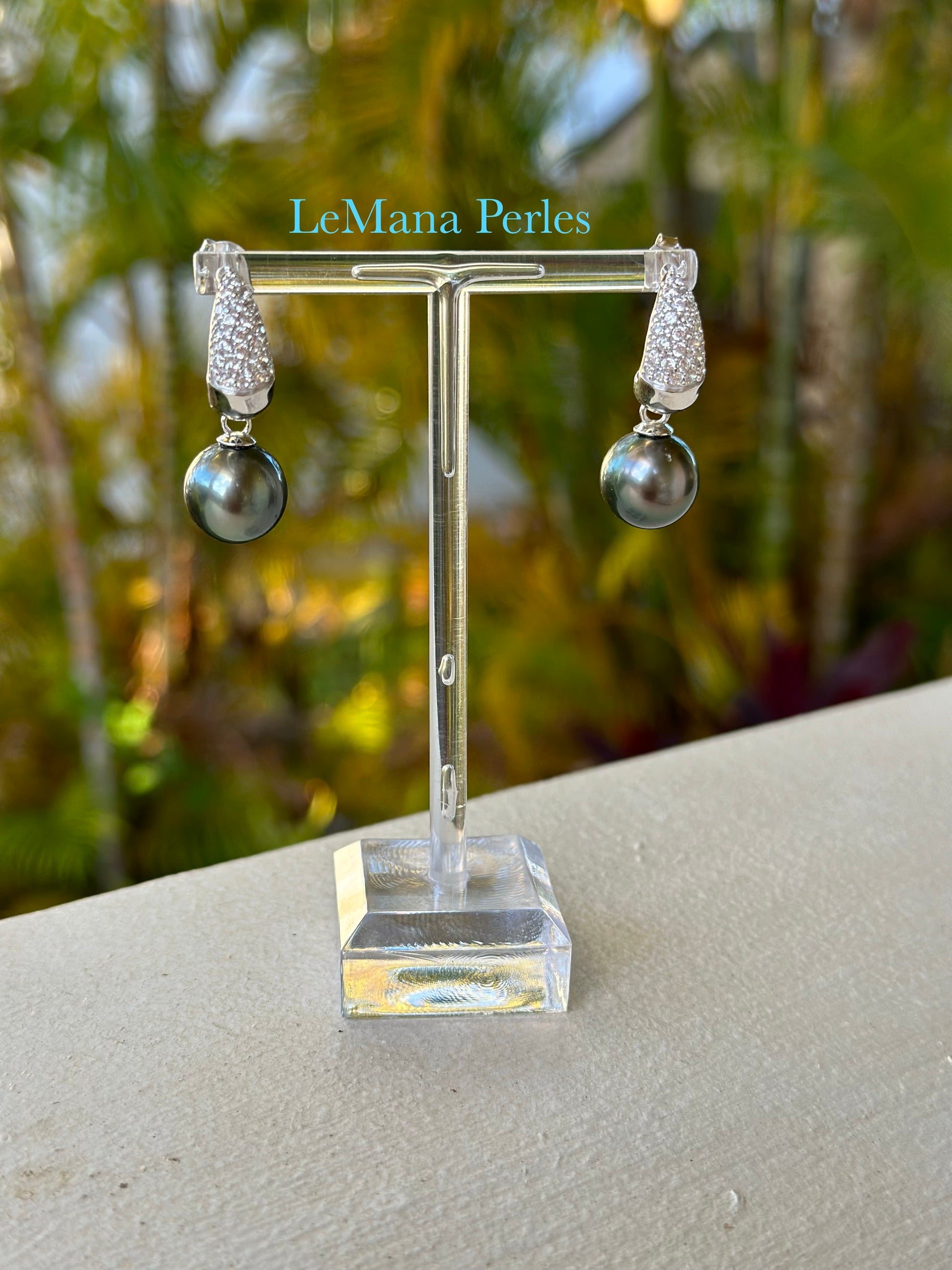 The many stars are reflected with the cubic zirconia, this earring embraces a large 11-12mm Tahitian Pearl.