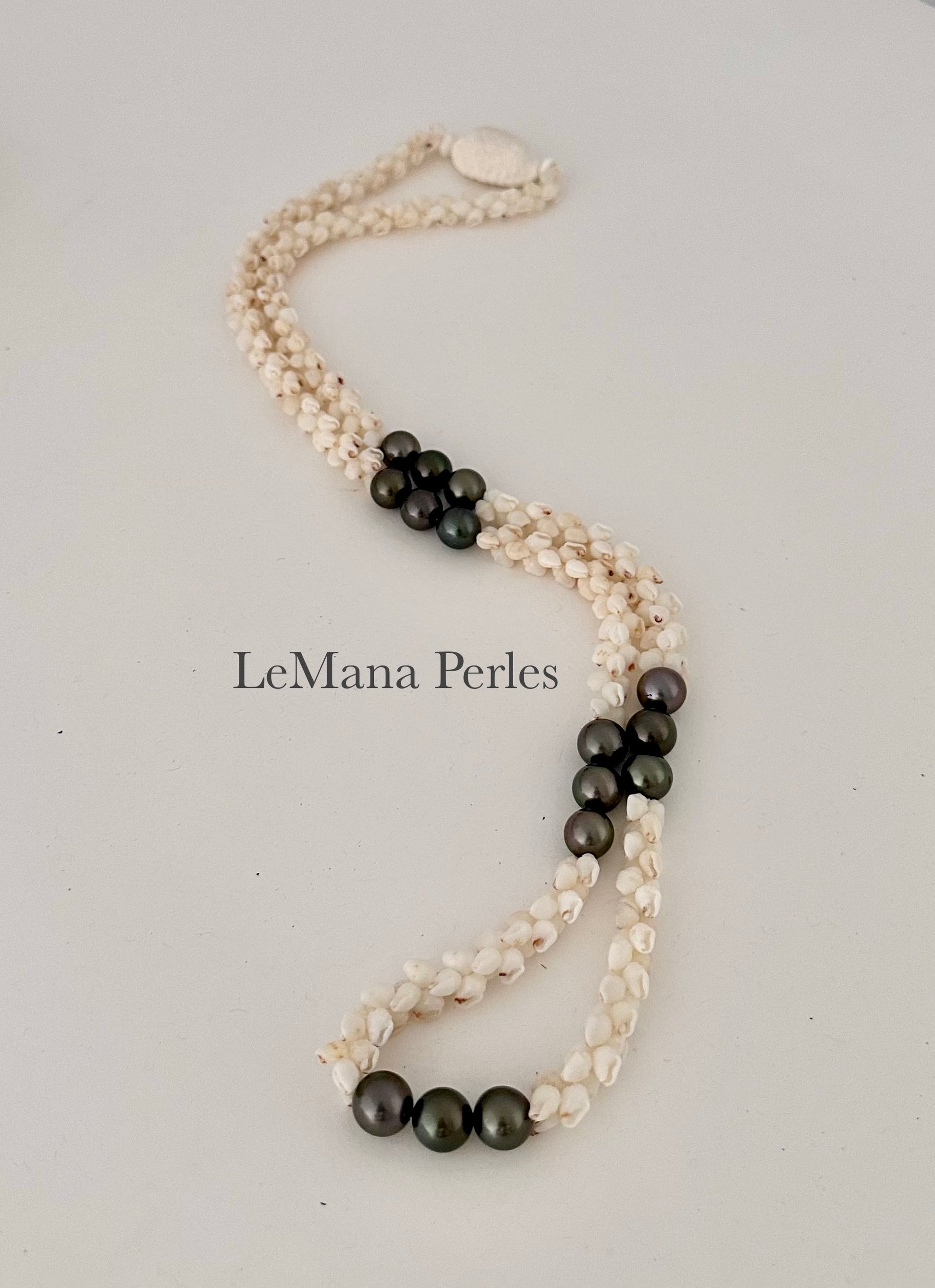 The treasures of the Pacific! From Tahiti to Hawai'i, this necklace is a unique design inspired by two loves--Tahitian pearls and Ni'ihau shells.