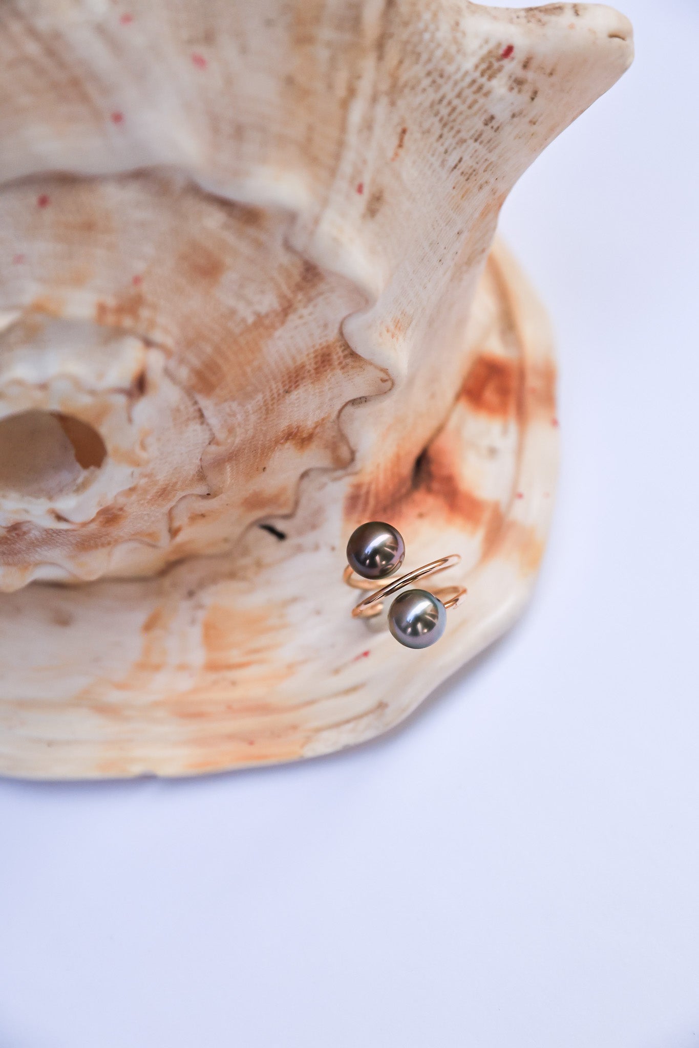 The Two Tahitian Pearl Bypass Ring symbolizes the union of opposites—grace and strength, light and shadow—reminding the wearer of the balance that exists within all of us. The fluid design celebrates the beauty of contrasts, while the pearls themselves represent wisdom, resilience, and the mystery of the ocean.